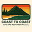 Illustration of a mountain, trees, and a river at sunset or sunrise, with a rounded rectangular border, and the text "Coast to Coast CFO and Bookkeeping LLC" below.